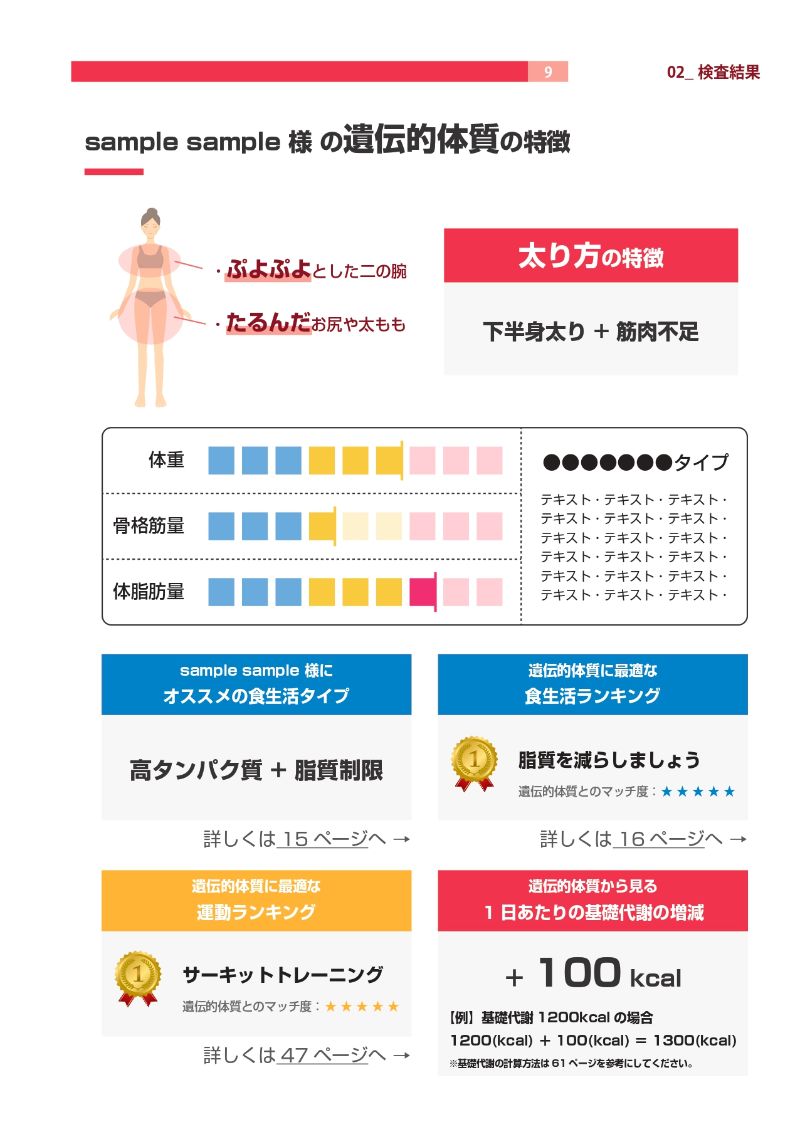 遺伝子検査によって「どんな栄養で太りやすいか?」「どんなメニューが痩せるのか」が一目でわかります。